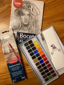 Week 1 focused on sketching animals and in week 2 watercolours were introduced with individual sets of new paints.